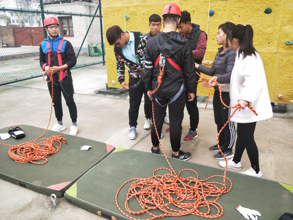 为了实现拓展体育课程项目多样化的重要举措。体育系积极推进教师技术技能多样性提升,支持团队队伍培训。在2018年在大学体育课程中引进拓展与攀岩课程,是大学体育特色课程重点培育项目。课程主要教学内容有:拓展训练的基础及相关理论、拓展训练项目的实践操作(高空项目、团队合作项目、沟通项目、个人突破项目)、分享感受、反思问题、总结经验、实践应用等及应急安全救援,红十字急救。