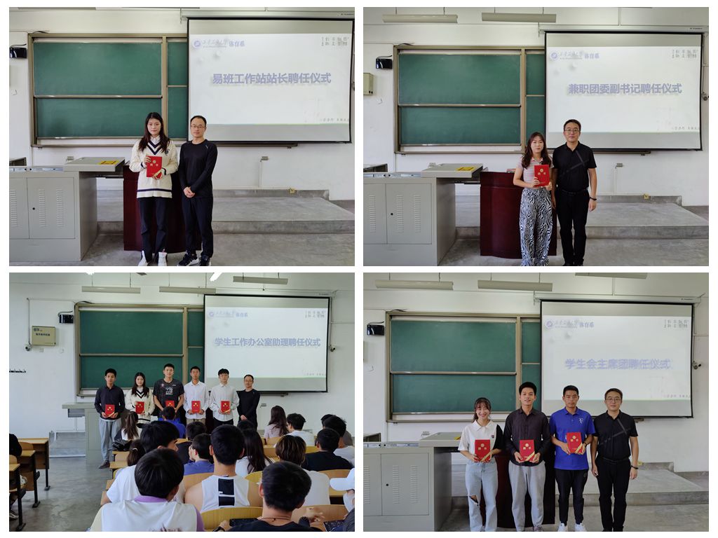 焦老师首先介绍了员工工作办公室、系团委、员工会、易班工作站的概况,肯定了上一届员工干部的工作成绩,感谢他们为体育系发展付出的努力,并宣布2021年的聘任名单。随后,侯老师、焦老师分别为员工工作办公室助理、系团委兼职副书记、员工会主席团成员、易班工作站站长颁发聘书。焦老师叮嘱员工干部要主动帮助同学、服务同学,要注意处理学习与工作的关系,积极开展班级建设,大学英语四级备考、考研就业等工作,主动带动班风、学风良好发展,也希望其他同学能够积极配合、尽力协助员工干部一同丰富同学们的校园文化生活。