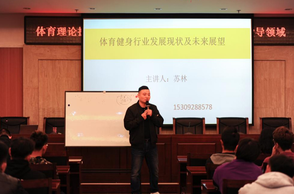 聘任结束后,苏林总经理作了题为《体育健身行业发展现状及未来展望》的专题报告。报告会由体育系董守伟老师主持,体育系部分教师、全体本科生及研究生聆听了报告。