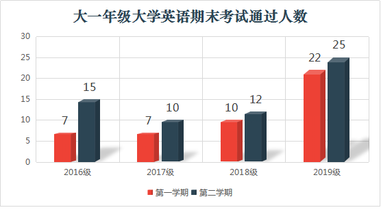 经过英语学习“四个一”系列活动的开展,我系英语学习成绩相比往年有显著提升,社体1901班第一学期大学英语期末考试通过人数22人,占比75.9%,是往年通过人数的2-3倍,第二学期大学英语期末考试仅有2位同学挂科。成绩的进步改变了员工对以往英语学习的观念,提升了自信心。