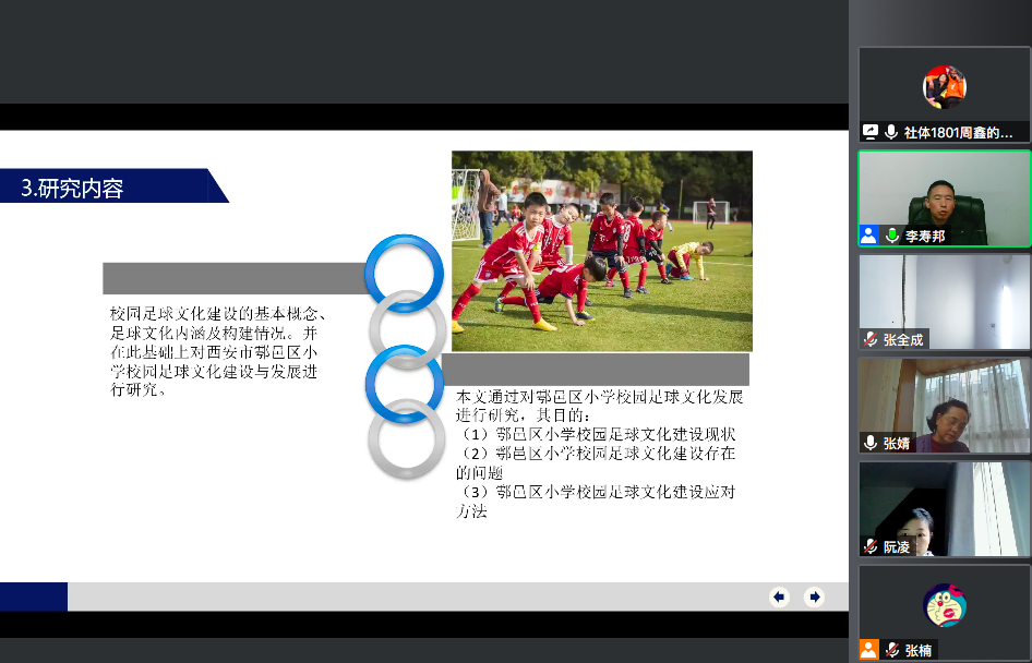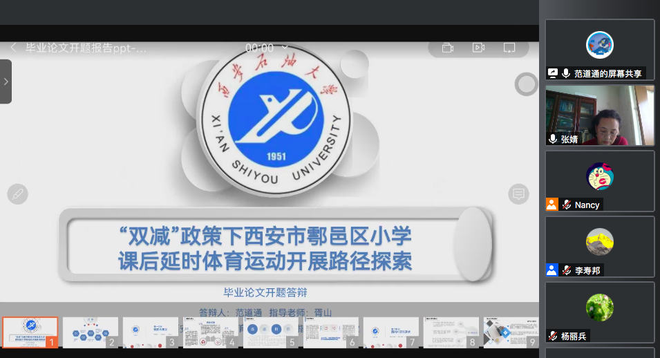 为推进本科毕业论文工作顺利进行,切实抓好毕业论文质量,2022年1月8日,体育系组织了2018级社会体育指导与管理专业本科毕业论文开题答辩会。开题答辩采用腾讯会议方式进行,我系社会体育指导与管理专业5名指导教师,2018级27名员工参加了开题答辩会。
