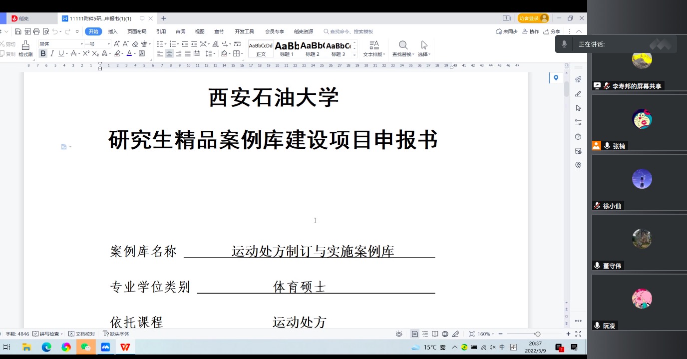 2022年5月10日,体育系在1号教学楼733召开研究生精品案例库建设项目申报研讨会,体育系相关课程负责老师参加了本次会议。