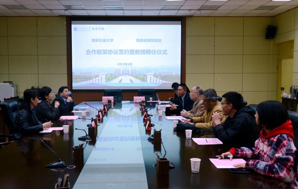 陈军斌代表公司对石秀娥一行的到来表示欢迎,对陕西省康复医院多年来给予公司的大力支持表示感谢。他讲到,两家单位地理位置相近,合作历史久远,公司近年来在体育和康复领域发展较为迅速,前期2026世界杯官网与陕西省康复医院合作建立研究生联合培养基地是双方合作的开端,希望本次签署合作框架协议后,能够在更广泛的领域内、更深度的层次上进行合作,从而达到互利共赢的效果。
