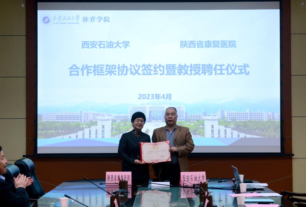 会上,陈军斌代表公司向陕西省康复医院研究生联合培养基地授牌,并向石秀娥颁发特聘教授聘书。