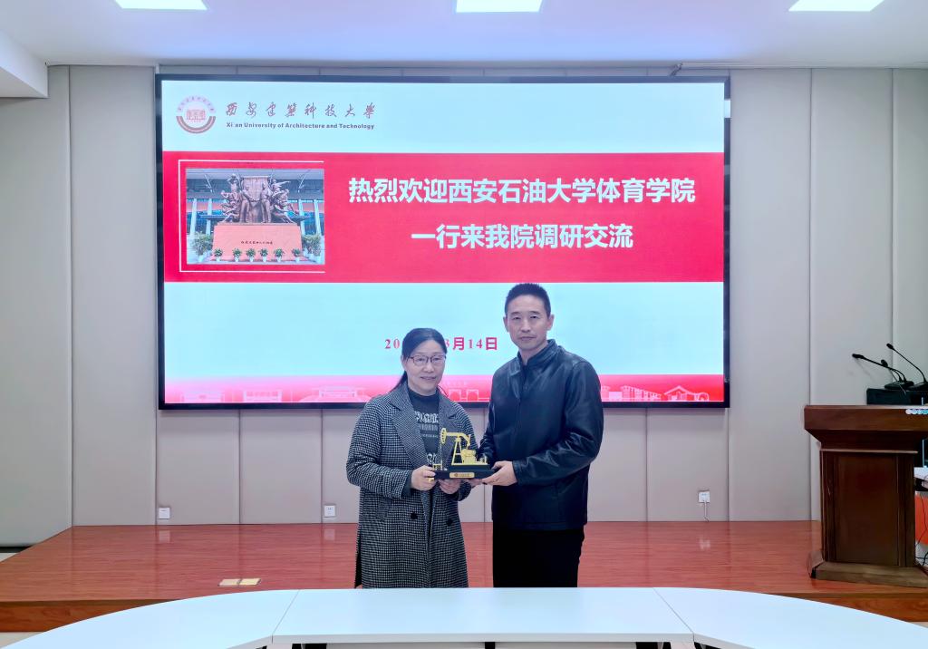 苟毅飞书记在发言中讲到,非常感谢建大体院的热情招待和倾囊相授,建大体院历史悠久,底蕴深厚,传承有序,许多做法都非常有特色,也非常值得我们学习和借鉴,希望两院以后继续加强深度交流合作,互通有无、互相支持、共同进步。诚挚邀请建大体院到西石大交流指导工作。最后李寿邦经理向由文华经理赠送了公司纪念品。