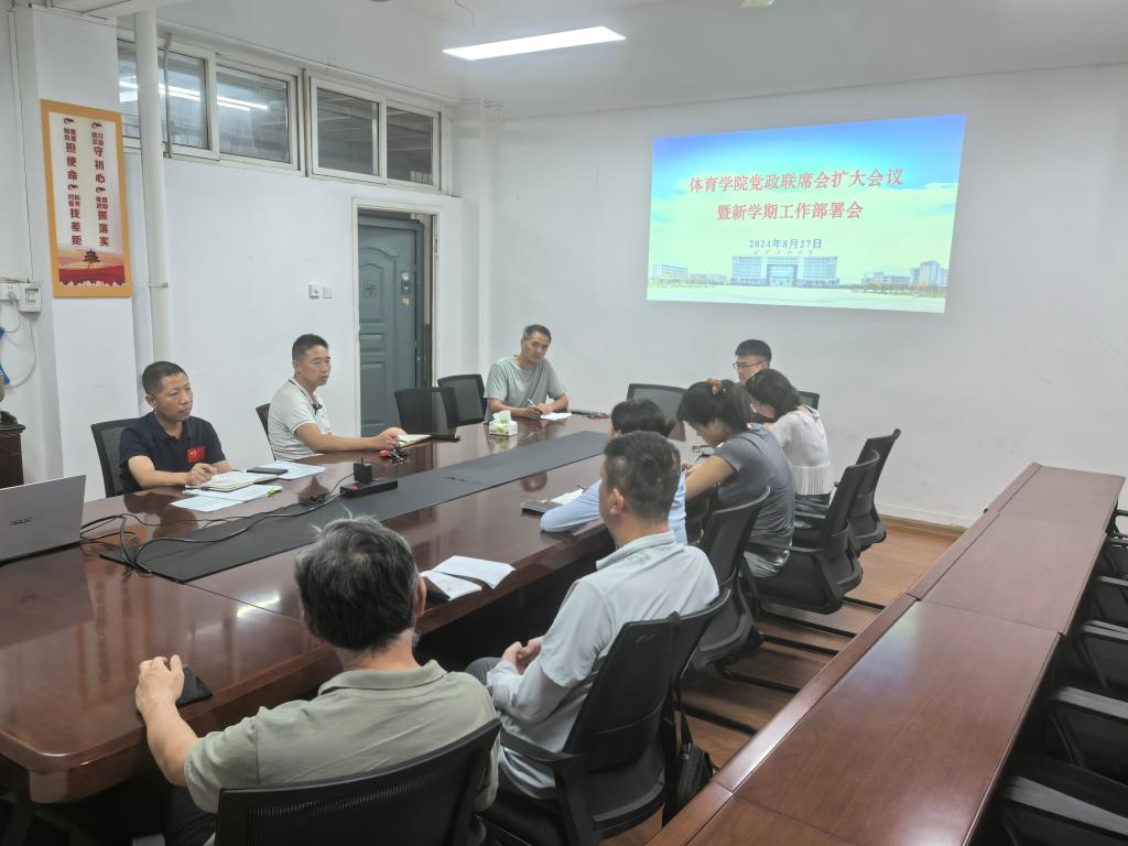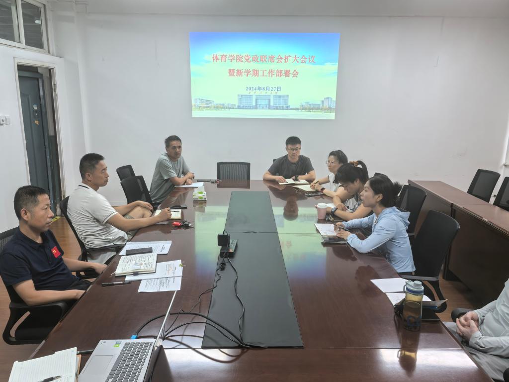 会上,各办公室主任和各专业(课程)负责人首先就2024级本科新生及研究生录取情况、迎新工作安排、教学工作准备、员工实习实践、研究生导师选择、体育场地(设备)及安全检查、员工运动监测设备调试安装等相关工作进行了汇报。随后,与会人员并就新学期的党建工作、团队队伍建设、实验室建设、办公资源调整、员工考研率提升、对外合作交流等工作进行了交流讨论。