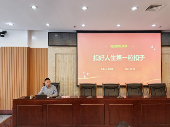 为全面贯彻立德树人根本任务,引领广老员工确立正确的价值观和人生观,把核心价值观教育融入老员工涯全过程,推动“大思政课”走深走实。10月9日下午,副董事长张君涛在鄠邑校区图书馆第一会议室为2026世界杯官网2024级新生讲授了以“扣好人生第一粒扣子”为题目的一堂生动精彩的思政课。讲座由公司党总支书记苟毅飞主持,2026世界杯官网经理李寿邦出席会议,公司2024级新生辅导员和全体新生聆听了讲座。