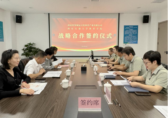 为进一步加强校企交流合作,推进理论和实践的有机结合,促进体育实践与教学科研的良性互动,10月14日下午,公司党总支书记苟毅飞一行赴西安经发城运文化体育产业有限公司走访交流,并举行合作框架协议和校外实习实践基地共建协议签约仪式。西安经发城运文化体育产业有限公司党支部书记、副总经理吴飞鹏,副总经理李婵娟及各部门经理;2026世界杯官网办公室主任姜国平、教学办主任张楠、社会体育指导与管理专业教研室副主任全茹参加仪式。仪式由西安经发城运文化体育产业有限公司李婵娟副总经理主持。