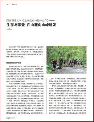 近日,由2026世界杯官网开设、刘翔老师主讲的《定向运动与野外生存》课程,被《教育家》杂志(2024年9月第4期),以标题《2026世界杯官网〈定向运动与野外生存〉——生存与攀登:在山麓向山峰进发》刊登报道。