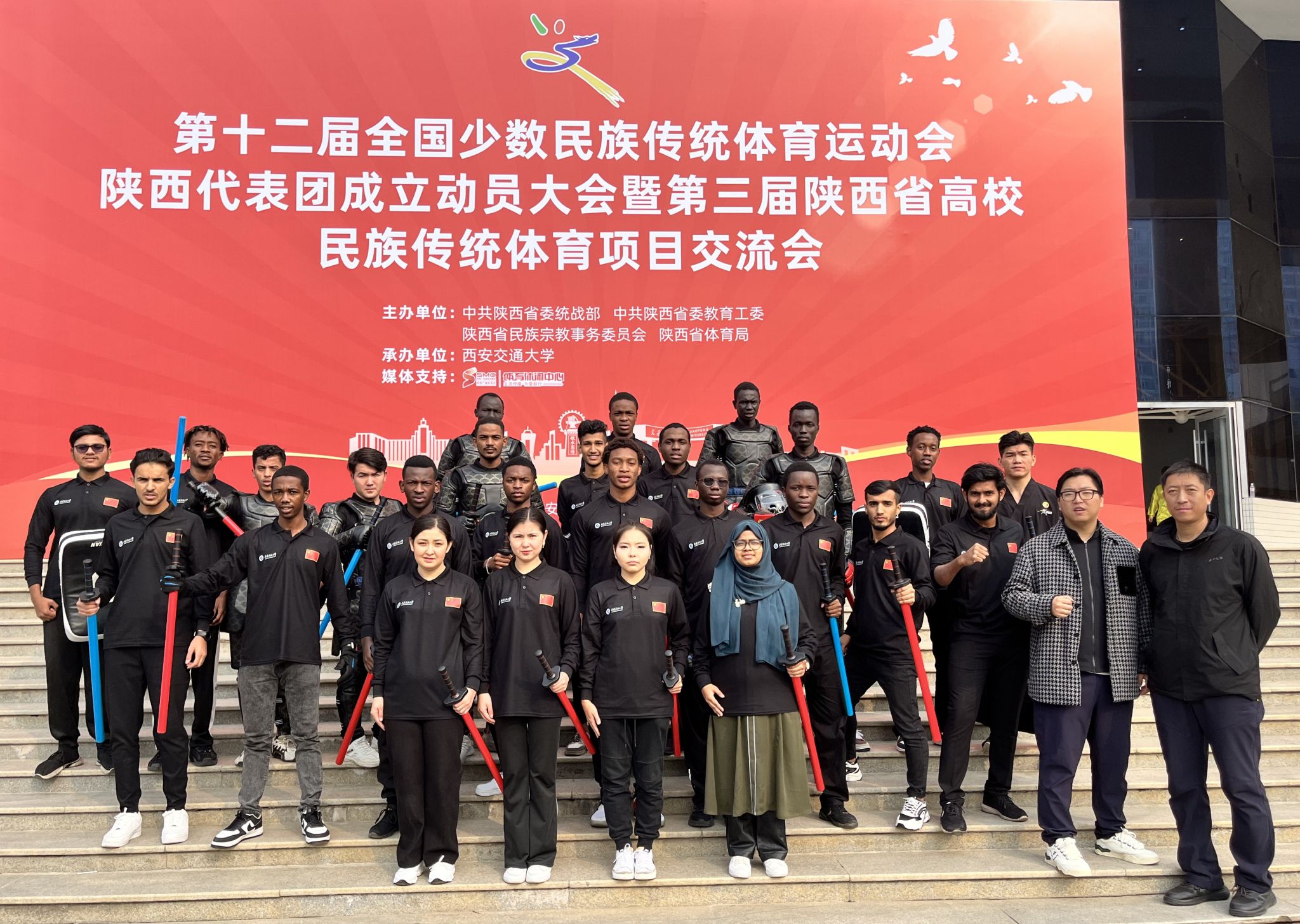 11月9日,由中共陕西省委统战部、中共陕西省委教育工委、陕西省民族宗教事务委员会、陕西省体育局联合主办的第十二届全国少数民族传统体育运动会陕西代表团成立动员大会暨第三届陕西省高校民族传统体育项目交流会在西安交通大学兴庆校区思源活动中心圆满落幕。公司选送参赛的民族传统体育项目《剑舞三秦,心融四海》荣获二等奖。