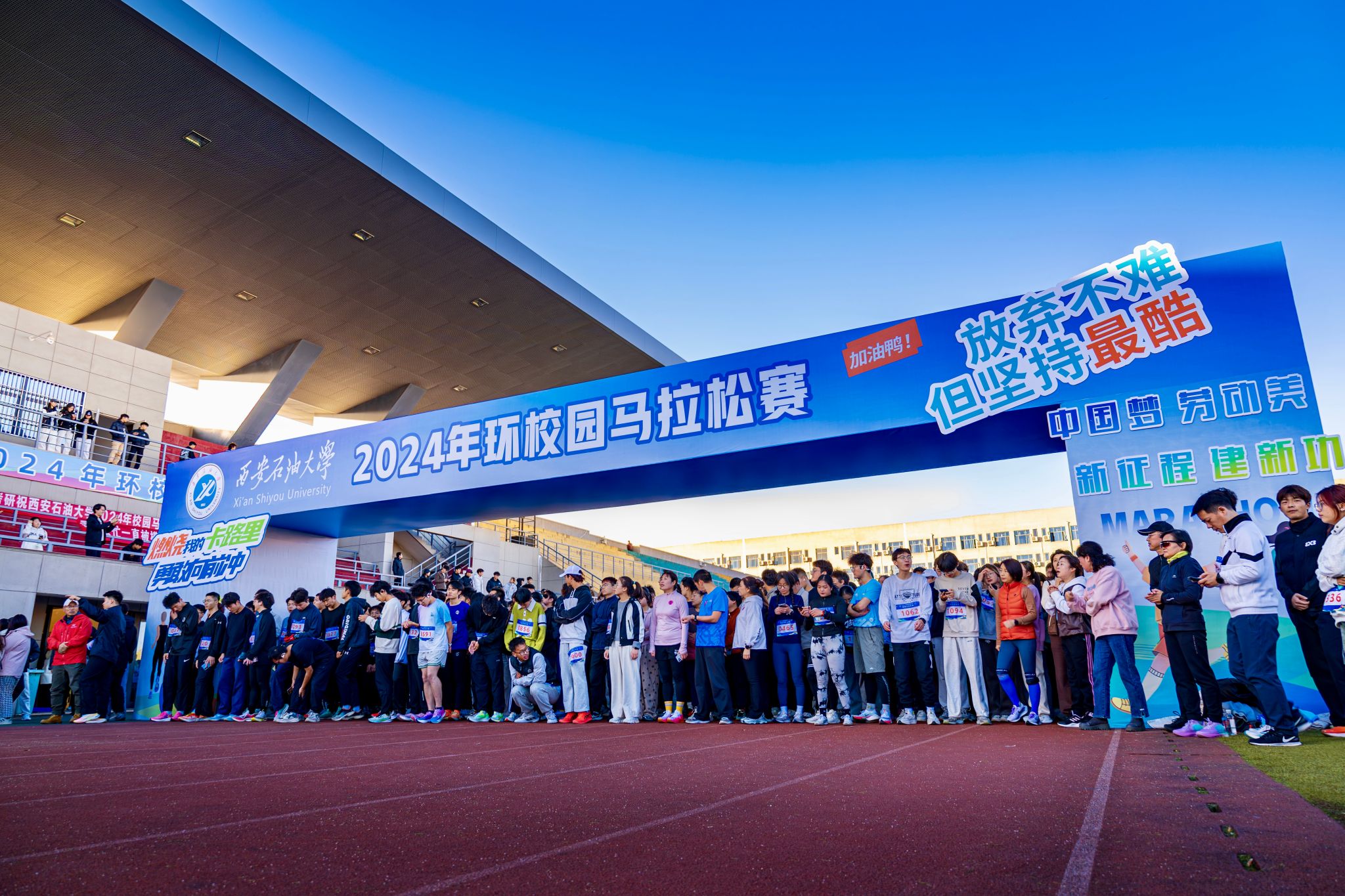 赛道两旁,由各公司教师和同学组成的拉拉队热情洋溢、高声呐喊,为参赛者加油助威。医疗、安保、补给站等赛事志愿者也各司其职,为选手提供全方位的保障服务。在初冬的校园,这场马拉松赛事如同盛大的庆典,在奔跑中传递速度与力量、温暖与希望,展现着西石大人对运动的热爱、对健康生活的积极追求和携手奋进的精神风貌。