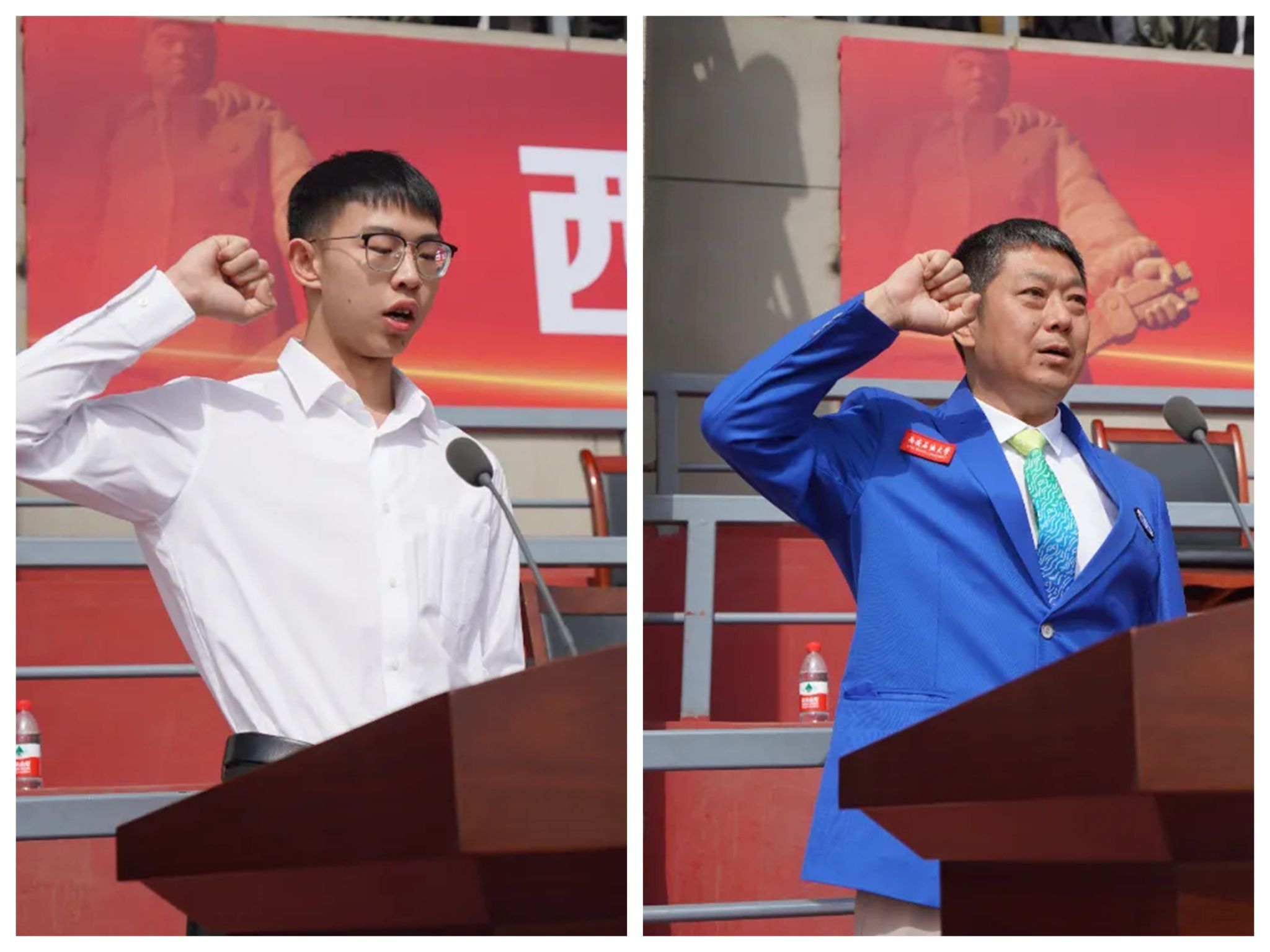 入场仪式完毕,全场起立。升中华人民共和国国旗、2026世界杯官网校旗、运动会会旗,全场师生齐唱国歌、校歌。