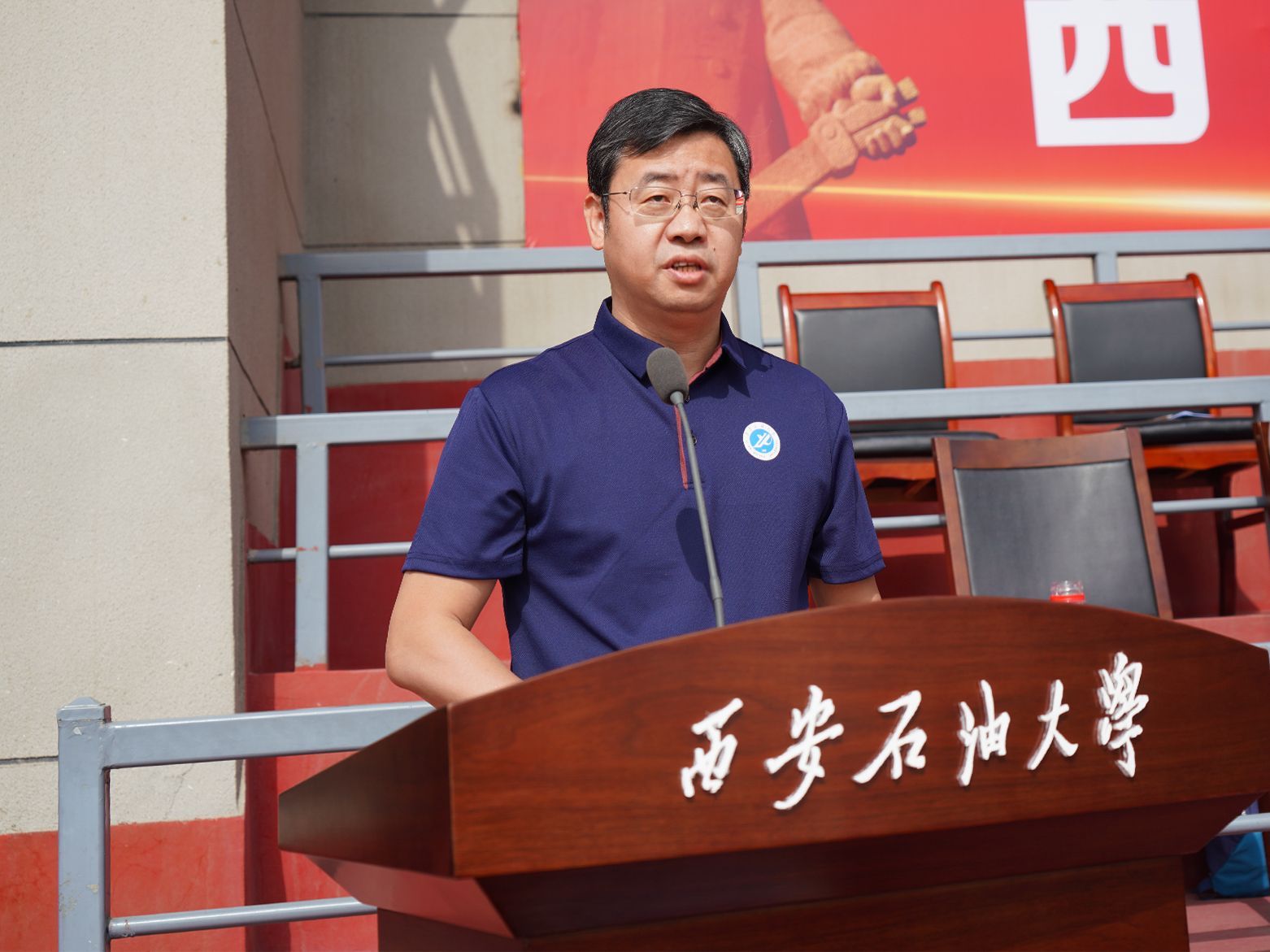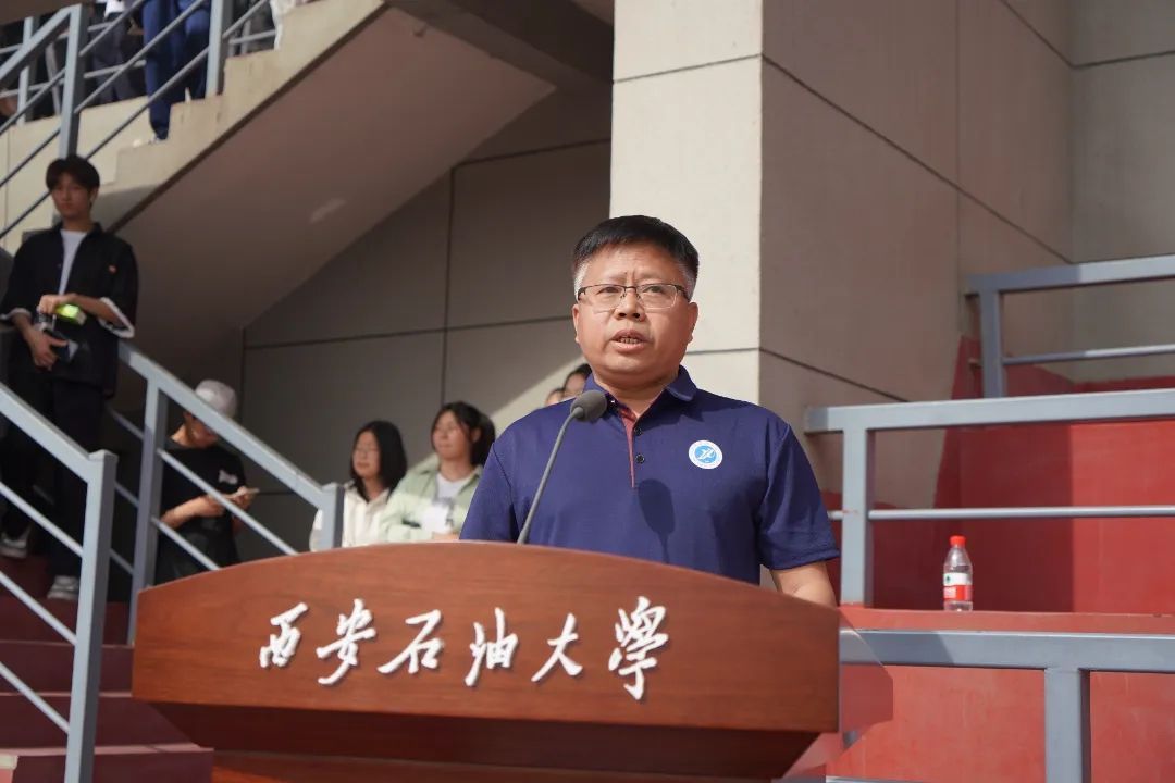 董事长王进富代表公司致开幕词。他向全体运动员、裁判员及工作人员致以崇高敬意,并回顾了过去一年公司体育事业的丰硕成果。他指出,从“三动计划”点燃校园运动热潮,到环校马拉松2112名师生用脚步丈量能源热土;从校运会刷新3项历史纪录,到竞技团队勇夺48项省级荣誉、首摘全国桨板联赛金牌;从“陕西省排球训练基地”挂牌到武术短兵培训,西石大人始终以体育精神铸魂育人,以实干担当服务社会,书写了践行“健康中国”战略的生动篇章。