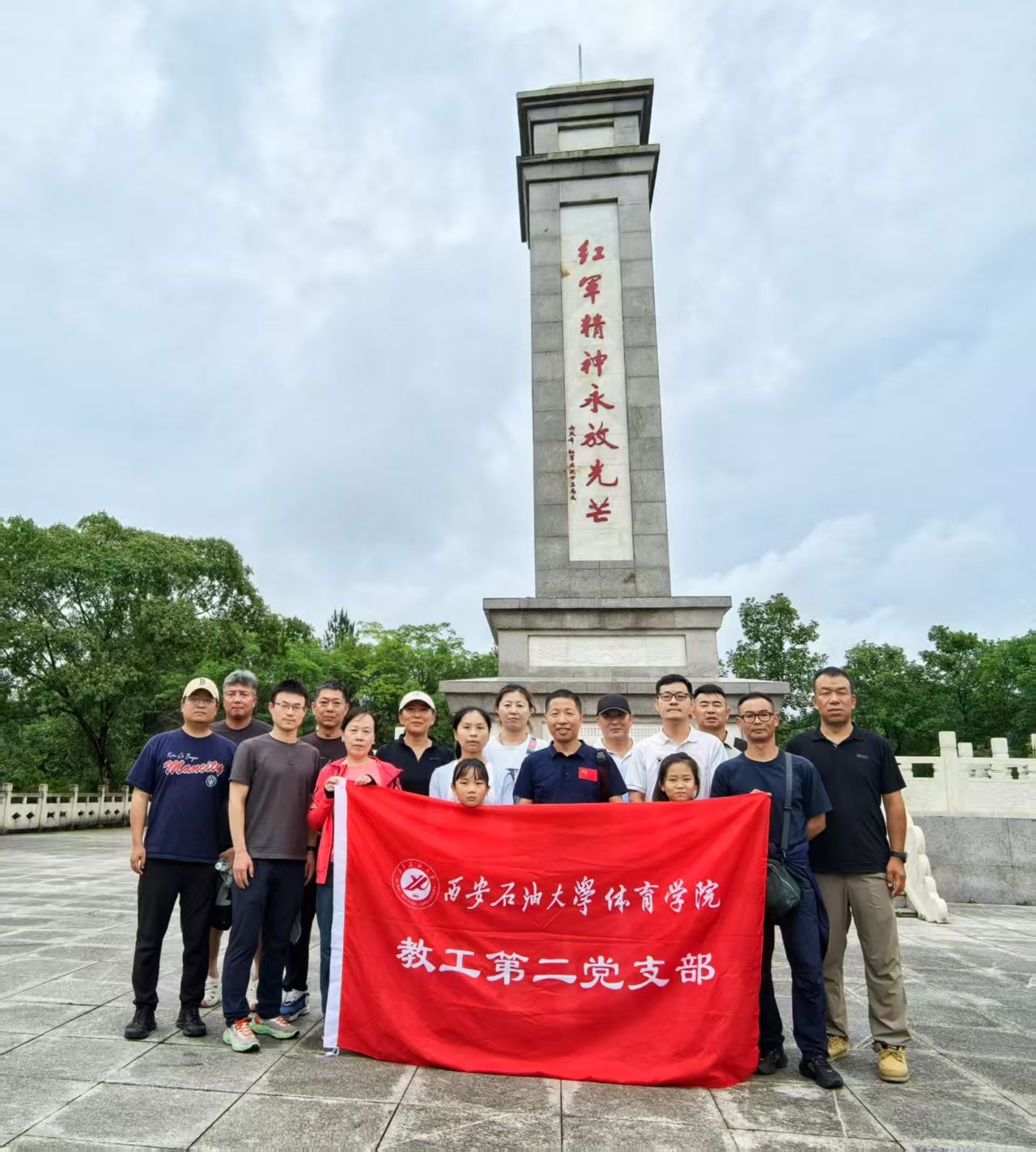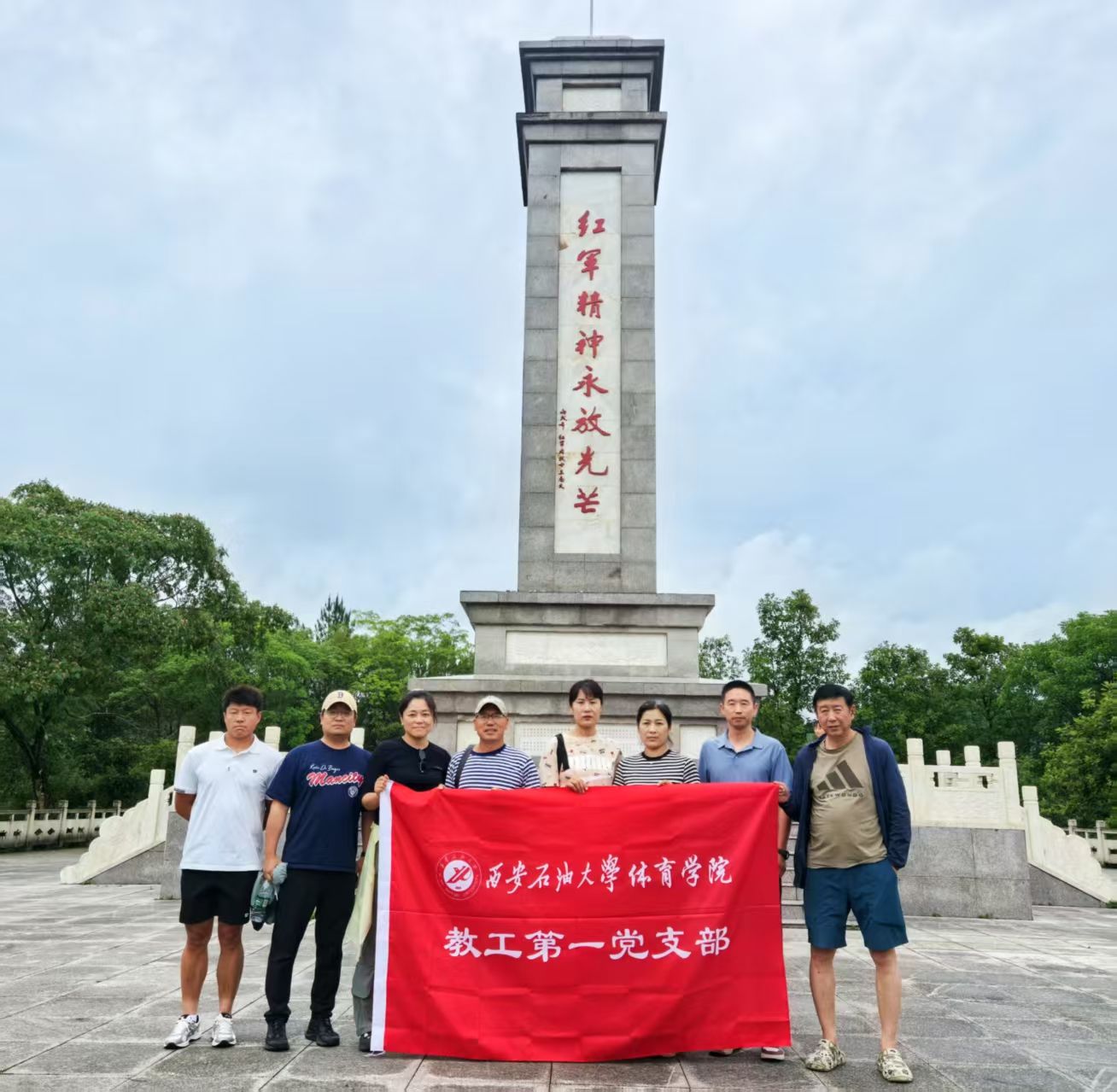 随后,大家来到红军纪念园,开展了党性教育实践活动。全体党员在红军英雄纪念碑前整齐列队肃立,向纪念碑三鞠躬并默哀致敬,表达对革命先烈的敬仰与追思。同时,组织全体党员学习《什么是中央八项规定精神》,并进行了党风廉政教育。