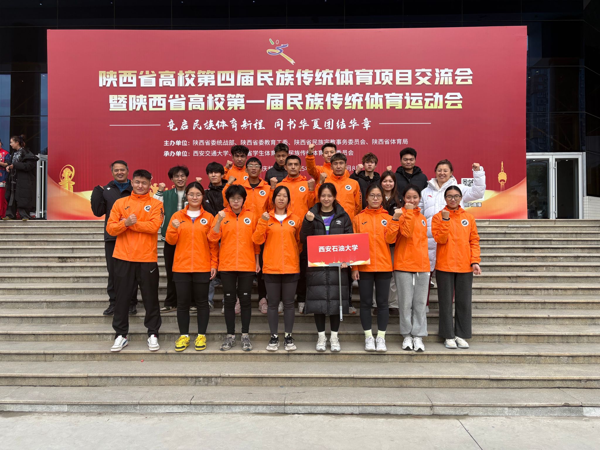 2025年11月8日,由中共陕西省委统战部、中共陕西省委教育工委、陕西省民族宗教事务委员会、陕西省体育局联合主办的陕西省高校第四届民族传统体育项目交流会暨陕西省高校第一届民族传统体育运动会在西安交通大学兴庆校区圆满落幕。本次盛会以“竞启民族体育新程,同书华夏团结华章”为主题,搭建起全省高校铸牢中华民族共同体意识、促进民族传统文化互学互鉴的重要平台,通过“以交流促合作、以交流促团结、以交流促发展”的办赛理念,推动各高校在民族体育领域深度融合。大会设置了表演项目(武术类、民族传统体育类)和竞赛项目(高脚竞速、板鞋竞速、押加、蹴球)两大类别,囊括腰鼓、传统武术、射艺、舞龙、摔跤、民族健身操等30项极具民族特色的体育项目。
