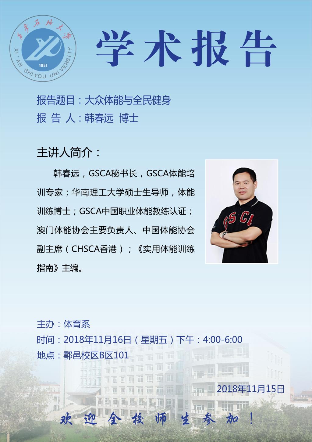 上一条:西安电子科技大学金玉柱博士应邀来我系作学术报告 下一条:体育系学术讲座:如何申报国家社会科学基金