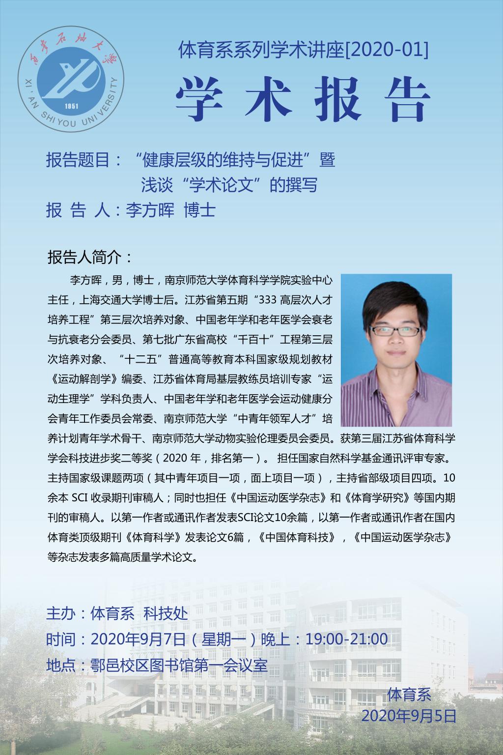 上一条:体育系学术讲座:优秀运动员体能训练理论与实践 下一条:体育系组织研究生参加“2020年健康中国战略实施中高等体育院校的责任与使命”网络研讨会