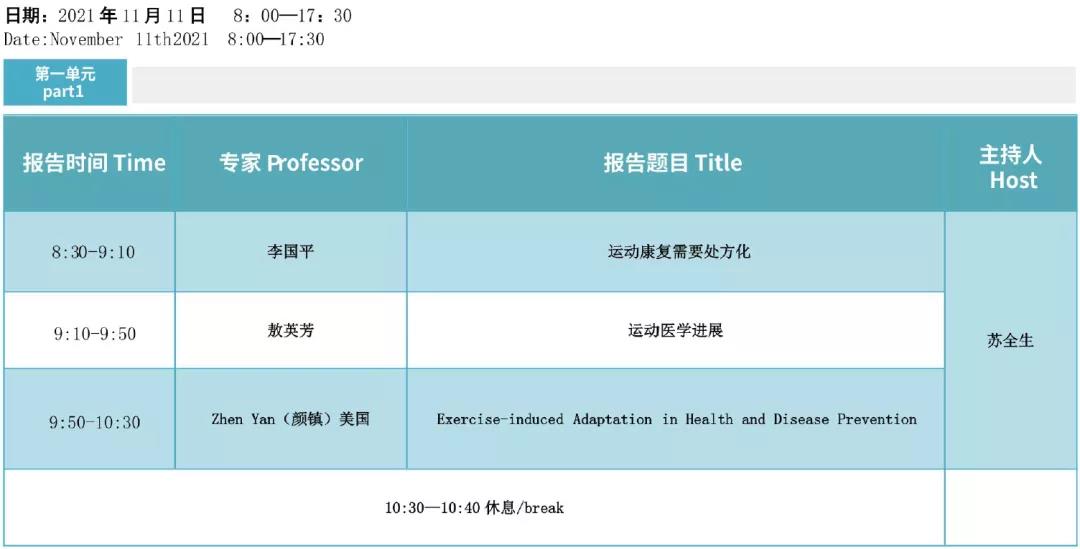 论坛一 运动与健康基础研究(第一单元)